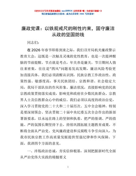/ 廉政党课:以铁规戒尺的刚性约束,固守廉洁从政的坚固防线