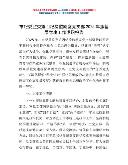 / 市纪委监委第四纪检监察室党支部2025年抓基层党建工作述职报告