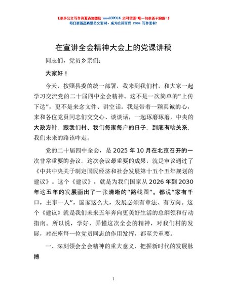 / 在宣讲全会精神大会上的党课讲稿