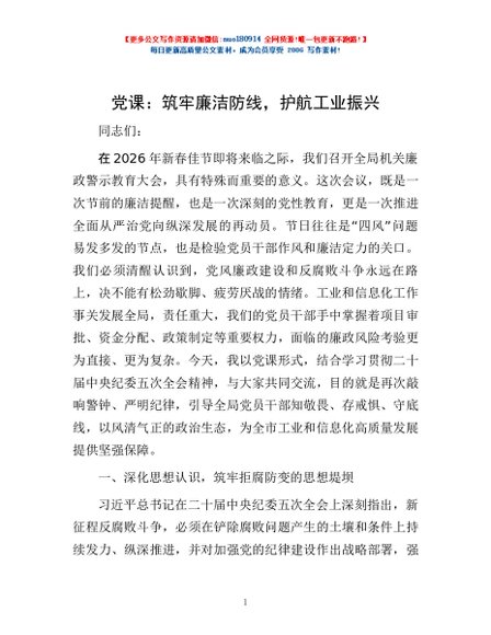 / 党课:筑牢廉洁防线,护航工业振兴