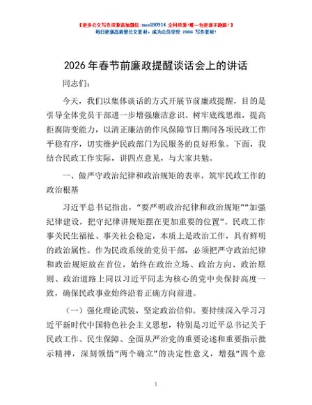 / 2026年春节前廉政提醒谈话会上的讲话