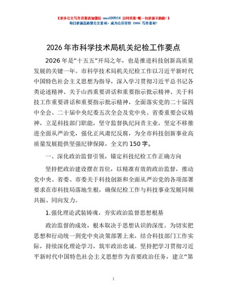 / 2026年市科学技术局机关纪检工作要点
