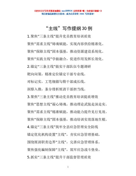 / “主线”写作提纲30例