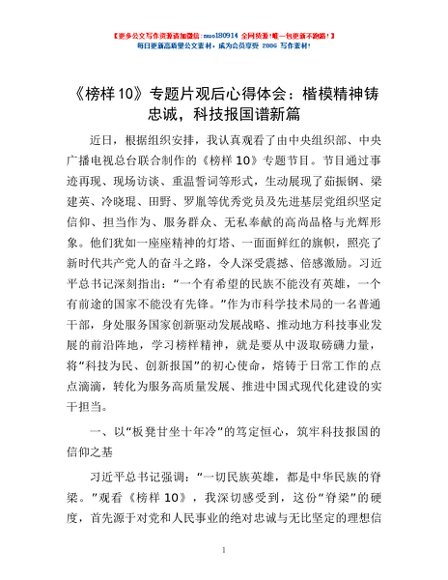 《榜样10》专题片观后心得体会:楷模精神铸忠诚,科技报国谱新篇