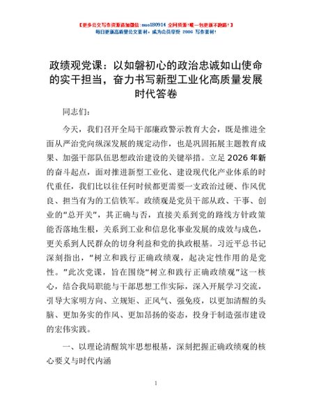 / 政绩观党课:以如磐初心的政治忠诚如山使命的实干担当,奋力书写新型工业化高质量发展时代答卷