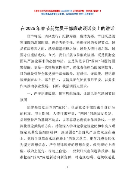 / 在2026年春节前党员干部廉政谈话会上的讲话