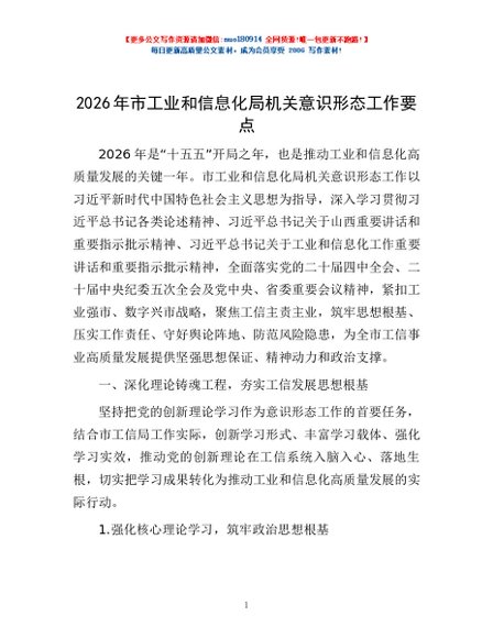 / 2026年市工业和信息化局机关意识形态工作要点