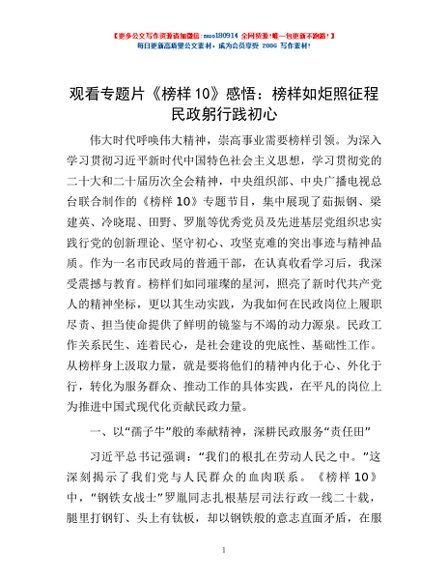 / 观看专题片《榜样10》感悟:榜样如炬照征程 民政躬行践初心