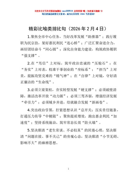 / 精彩比喻类排比句(2026年2月4日)