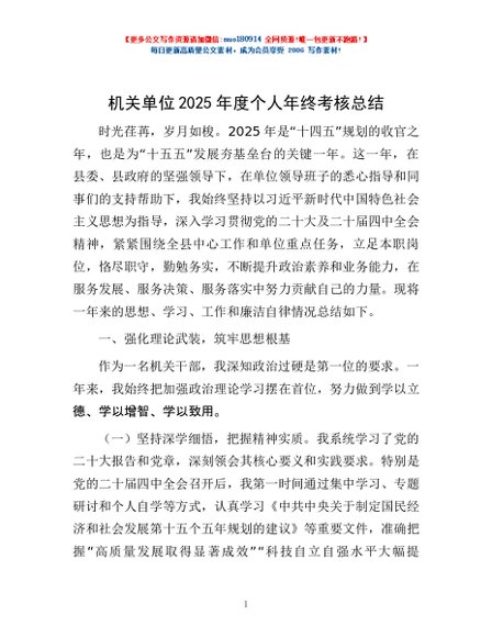 / 机关单位2025年度个人年终考核总结