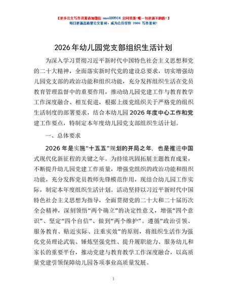 / 2026年幼儿园党支部组织生活计划