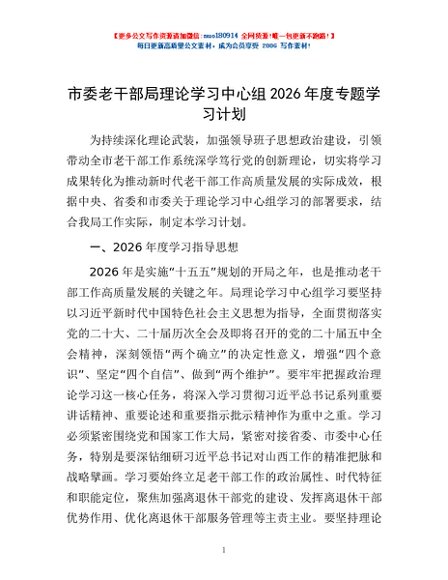 / 市委老干部局理论学习中心组2026年度专题学习计划