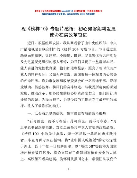 / 观《榜样10》专题片感悟:初心如磐躬耕发展 使命在肩改革奋进