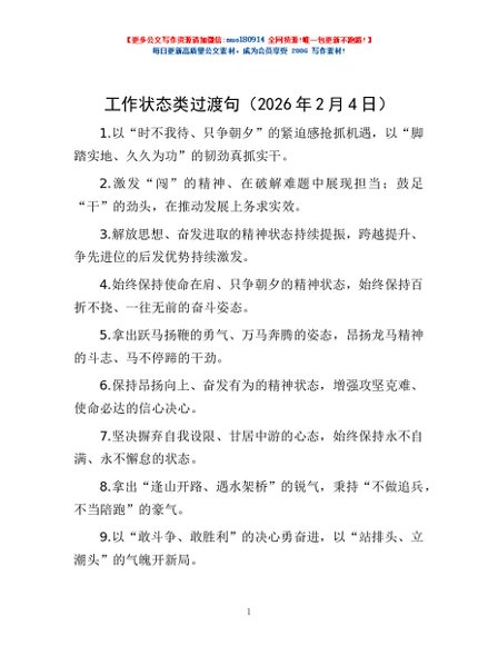 工作状态类过渡句(2026年2月4日)