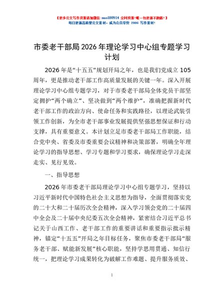 / 市委老干部局2026年理论学习中心组专题学习计划