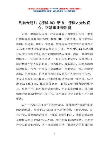 / 观看专题片《榜样10》感悟:榜样之光映初心,银龄事业谱新篇