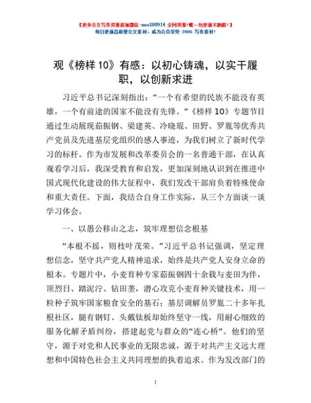 / 观《榜样10》有感:以初心铸魂,以实干履职,以创新求进