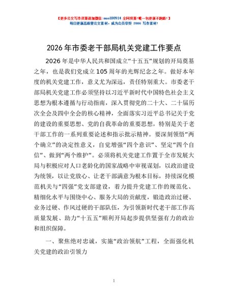 / 2026年市委老干部局机关党建工作要点