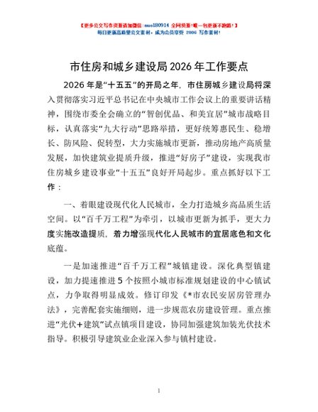 / 市住房和城乡建设局2026年工作要点