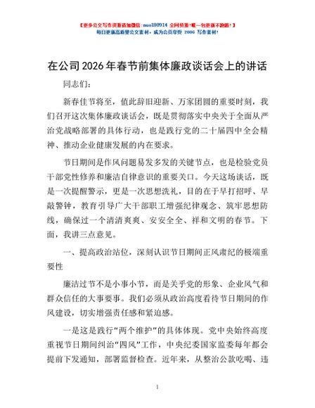 / 在公司2026年春节前集体廉政谈话会上的讲话