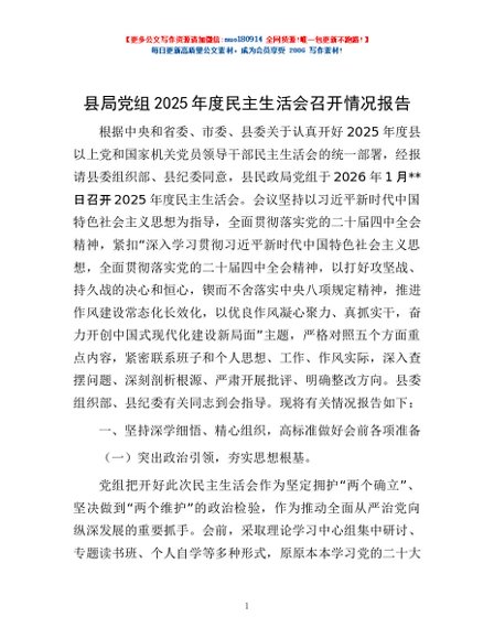 / 县局党组2025年度民主生活会召开情况报告