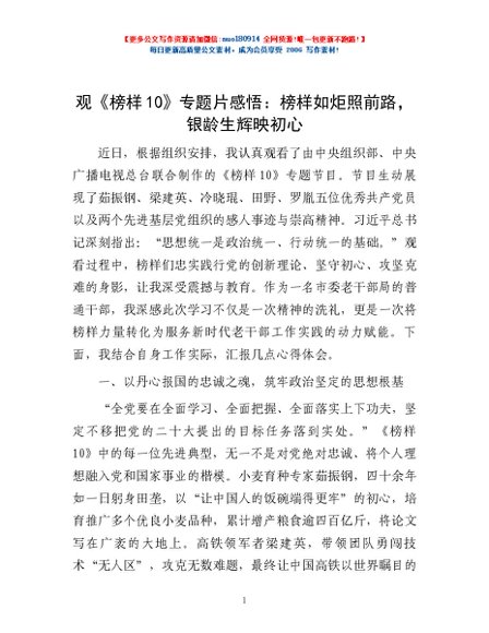 / 观《榜样10》专题片感悟:榜样如炬照前路,银龄生辉映初心