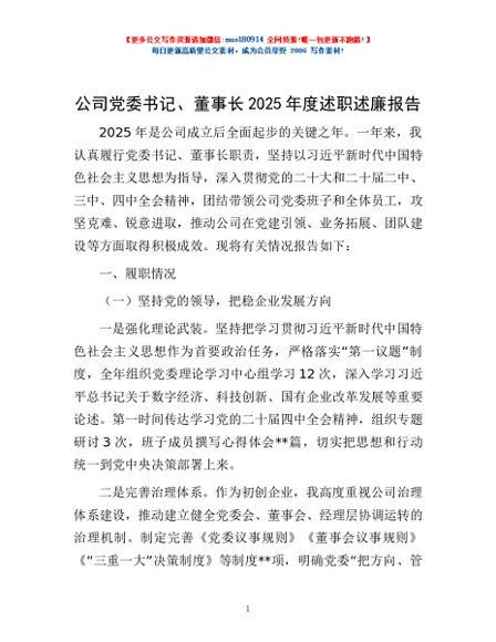 / 公司党委书记、董事长2025年度述职述廉报告