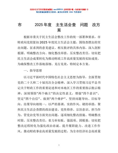 / 市财政局2025年度民主生活会查摆问题整改方案