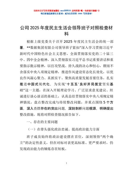 / 公司2025年度民主生活会领导班子对照检查材料