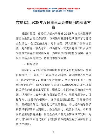 / 市局党组2025年度民主生活会查摆问题整改方案