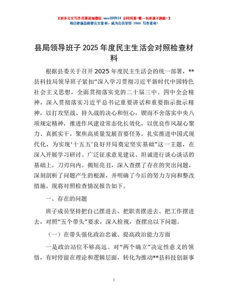 / 县局领导班子2025年度民主生活会对照检查材料