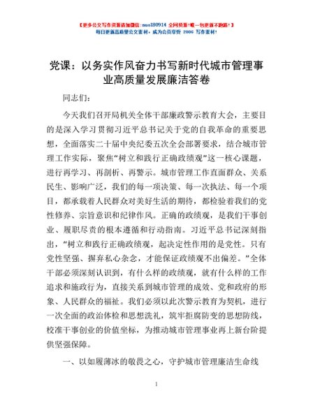 / 党课:以务实作风奋力书写新时代城市管理事业高质量发展廉洁答卷