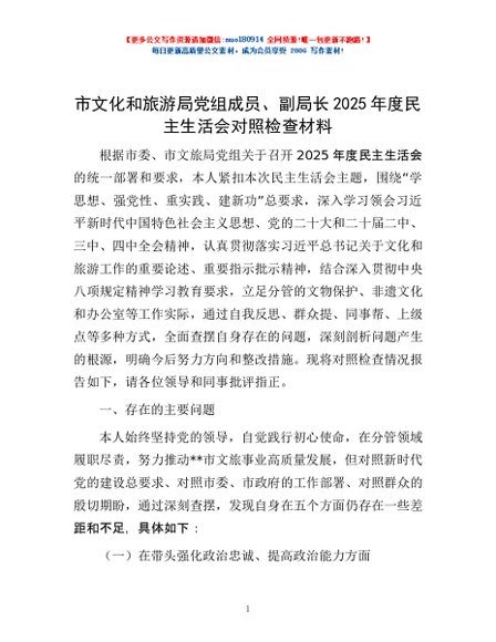 / 市文化和旅游局党组成员、副局长2025年度民主生活会对照检查材料