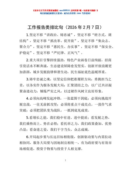 / 工作报告类排比句(2026年2月7日)
