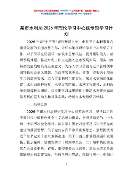 / 某市水利局2026年理论学习中心组专题学习计划