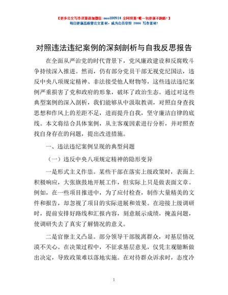 / 对照违法违纪案例的深刻剖析与自我反思报告