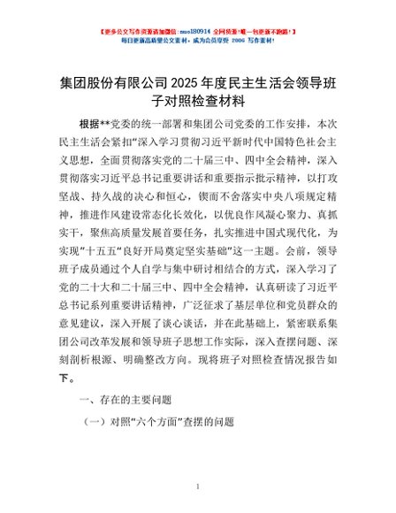 / 集团股份有限公司2025年度民主生活会领导班子对照检查材料