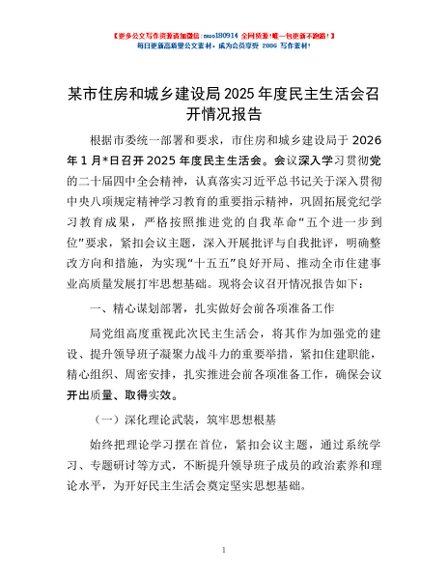 / 某市住房和城乡建设局2025年度民主生活会召开情况报告
