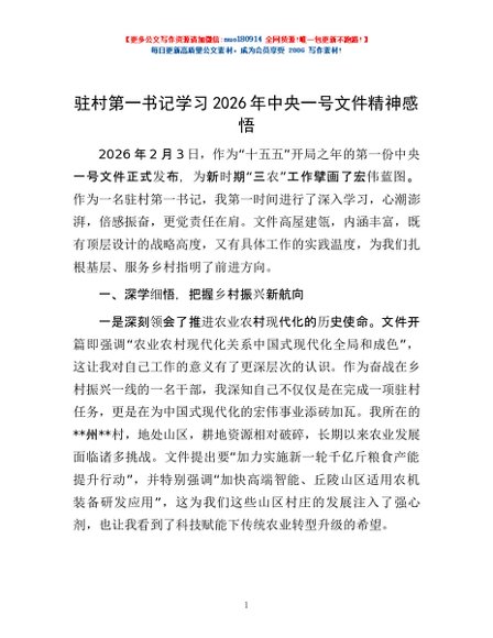 / 驻村第一书记学习2026年中央一号文件精神感悟