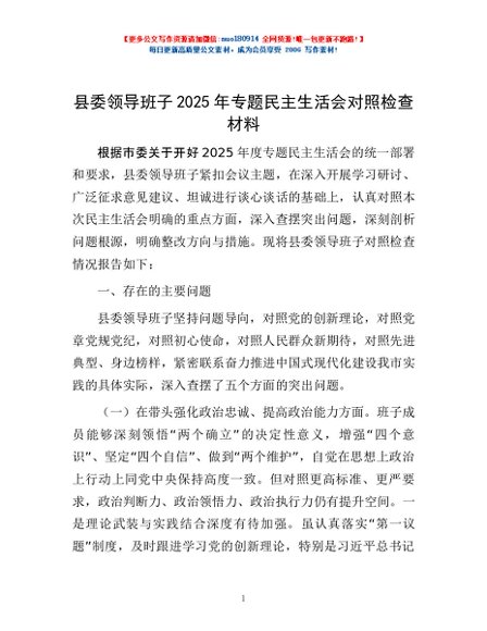 / 县委领导班子2025年专题民主生活会对照检查材料
