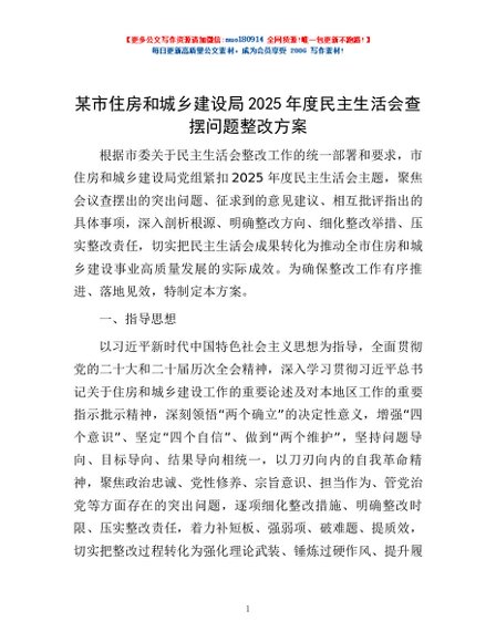 / 某市住房和城乡建设局2025年度民主生活会查摆问题整改方案