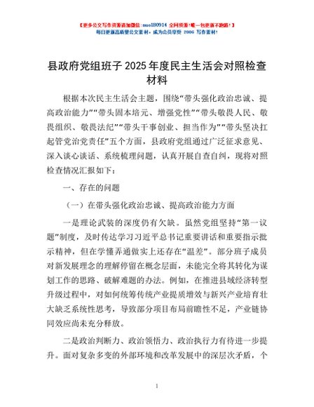 / 县政府党组班子2025年度民主生活会对照检查材料