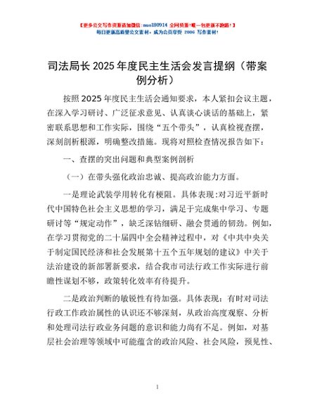 / 司法局长2025年度民主生活会发言提纲(带案例分析)