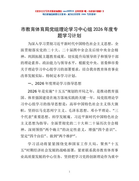 / 市教育体育局党组理论学习中心组2026年度专题学习计划