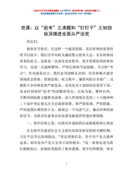 / 党课:以“赶考”之清醒和“钉钉子”之韧劲纵深推进全面从严治党