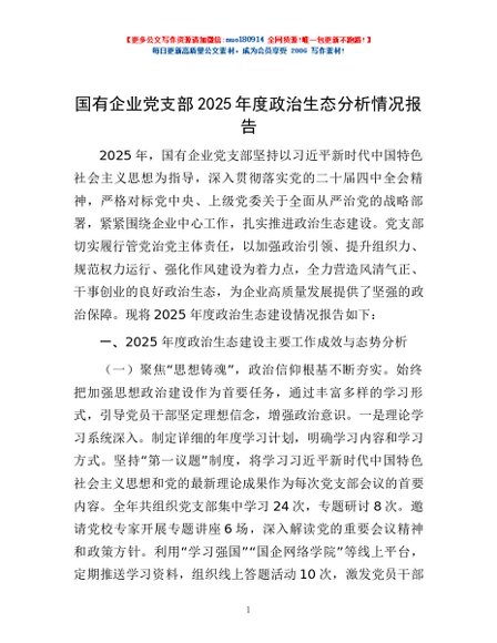 / 国有企业党支部2025年度政治生态分析情况报告