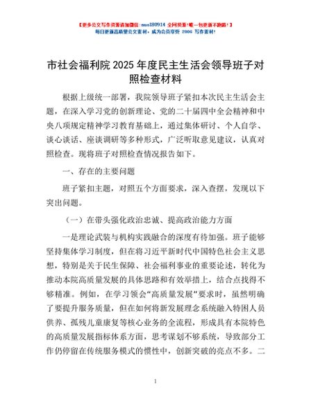 / 市社会福利院2025年度民主生活会领导班子对照检查材料