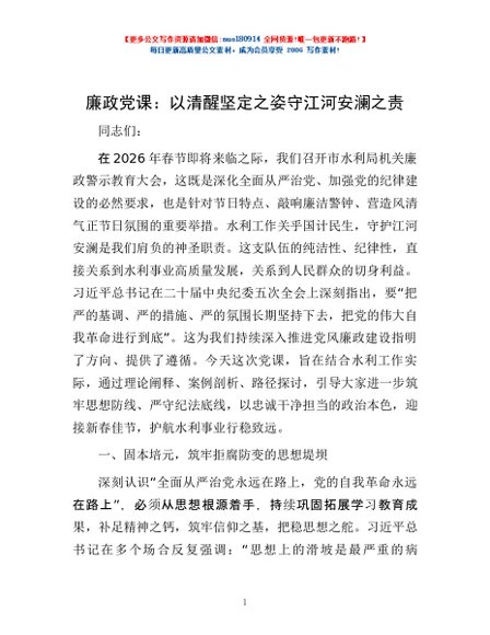 / 廉政党课:以清醒坚定之姿守江河安澜之责