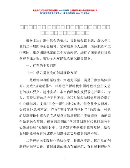 / 党员领导干部2025年度组织生活会个人对照检查材料(五个对照)