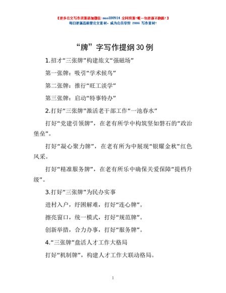 / “牌”字写作提纲30例